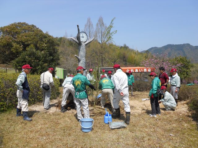 3mを超える見事な枝垂れ桜を 全員で土寄せしました。