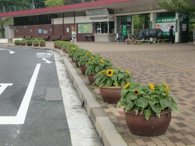 今日は活動日 皆さんお疲れ様でした。!! 動物園に行くと 正面玄関に ヒマワリが 綺麗に 咲いていました。 皆さん 綺麗に花が咲くと 作業のやりがいが有ると 話しておられました。 今日の作業は 食堂周り 科学館横 駐車場ゲート 正面玄関横の鉢 展望台下のプランター ハンギング等 ベゴニアなど 植替え!!