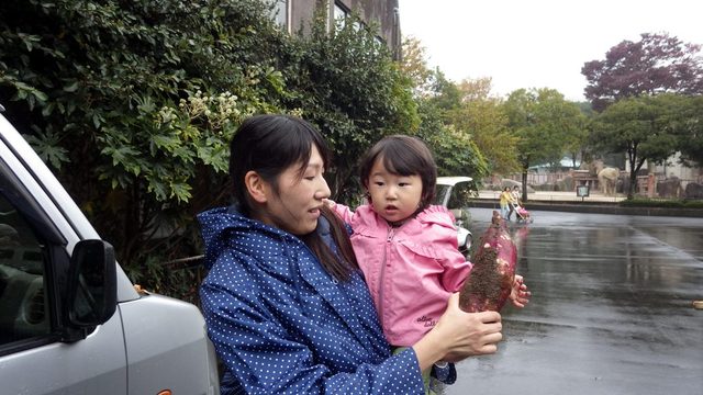 11/1小雨の中例年の芋掘り会が行われました。今年は12:45受付開始、13:00~芋掘りでしたが12:30頃にはほぼ50名位の親子が集まって開始を待っていました。土壌が良くなってきたのか、途中で少し追肥したのが良かったのか異常気象にも負けず出來の良い芋が多かったように見受けられました。写真の親子が今年度の重量1位に輝いた方で980gでした。来年こそ1kgオーバーを目指したい物です。内緒ですが安納芋が3年目にして漸く納得サイズになりました。