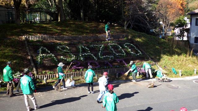 昨日は全員で以前の2000万人達成記念の花壇に写真のように文字を描くように葉ボタンを植え込んだ。上段に白い葉ボタンで『ASAZOO』を、縁取りには青色ビオラ。下段には赤い葉ボタンで『2017』少し早い迎春準備だ。