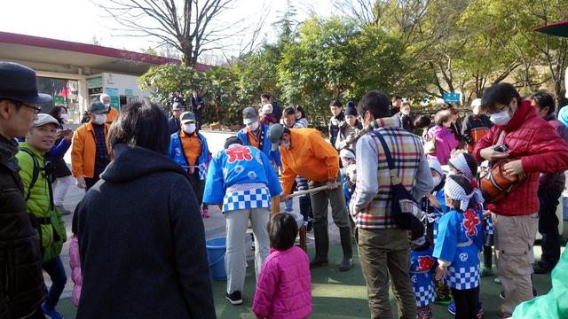 あけましておめでとうございます。天候に恵まれ昨日・今日と恒例の餅つきイベント開催。今年はノロウィルス流行の為餅を小さくちぎりこねる作業は職員とボラが行いこね上がった餅を配る方法に変更となったが杵つき・できたてはおいしくてこねる端から捌けていく。来年以降も続けて欲しいが衛生面の対策と経費が大変なようで継続は?作業班のボラは少し先ですが今年も多くの参加をお願い致します。